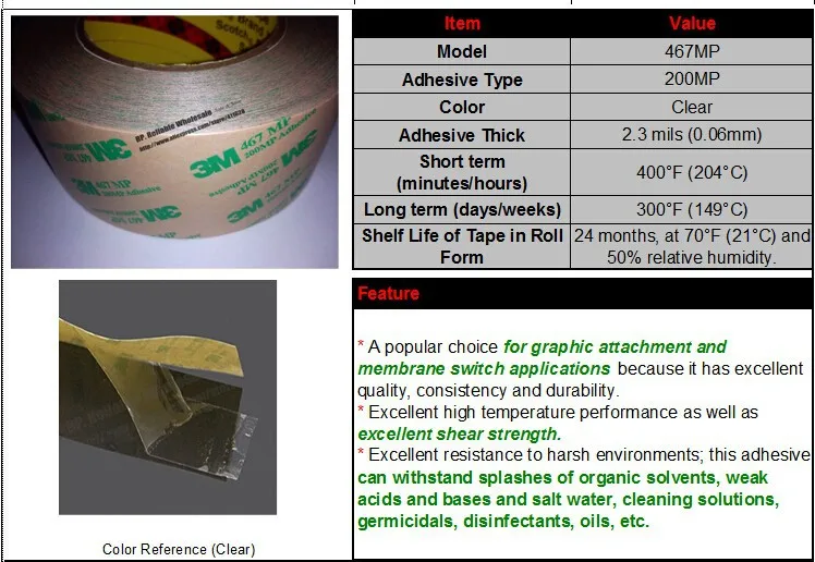 (0.06mm Thick), Super Thin 200mm*55M Clear 3M 467MP High Performance Adhesive Transfer Tapes for Graphic Nameplates LCD Panel