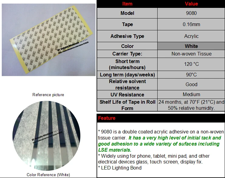 20pcs 100*200mm 3M 9080 High Performance Non-woven Tissue Double Coated Adhesive Sticker