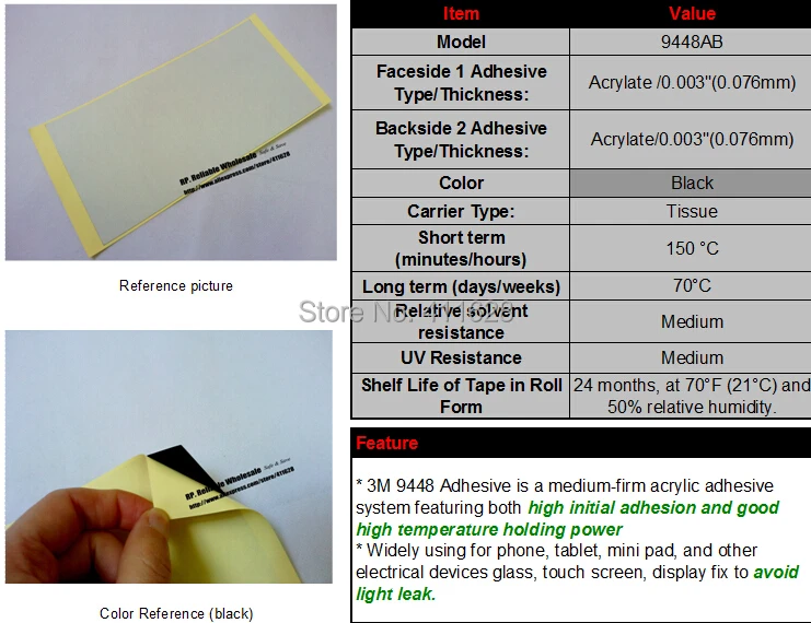 20 sheets 10cm*20cm Original 3M 9448AB Black Strong Bond Adhesive Tissue Sticker for Screen Glass, etc.