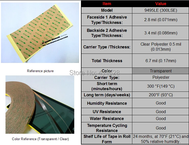 Big Sheet Adhesiver, 30cm*30cm, 3M 9495LE 300LSE Clear Transparent Double Side Adhesive Transfer Tape 300mmx300mm